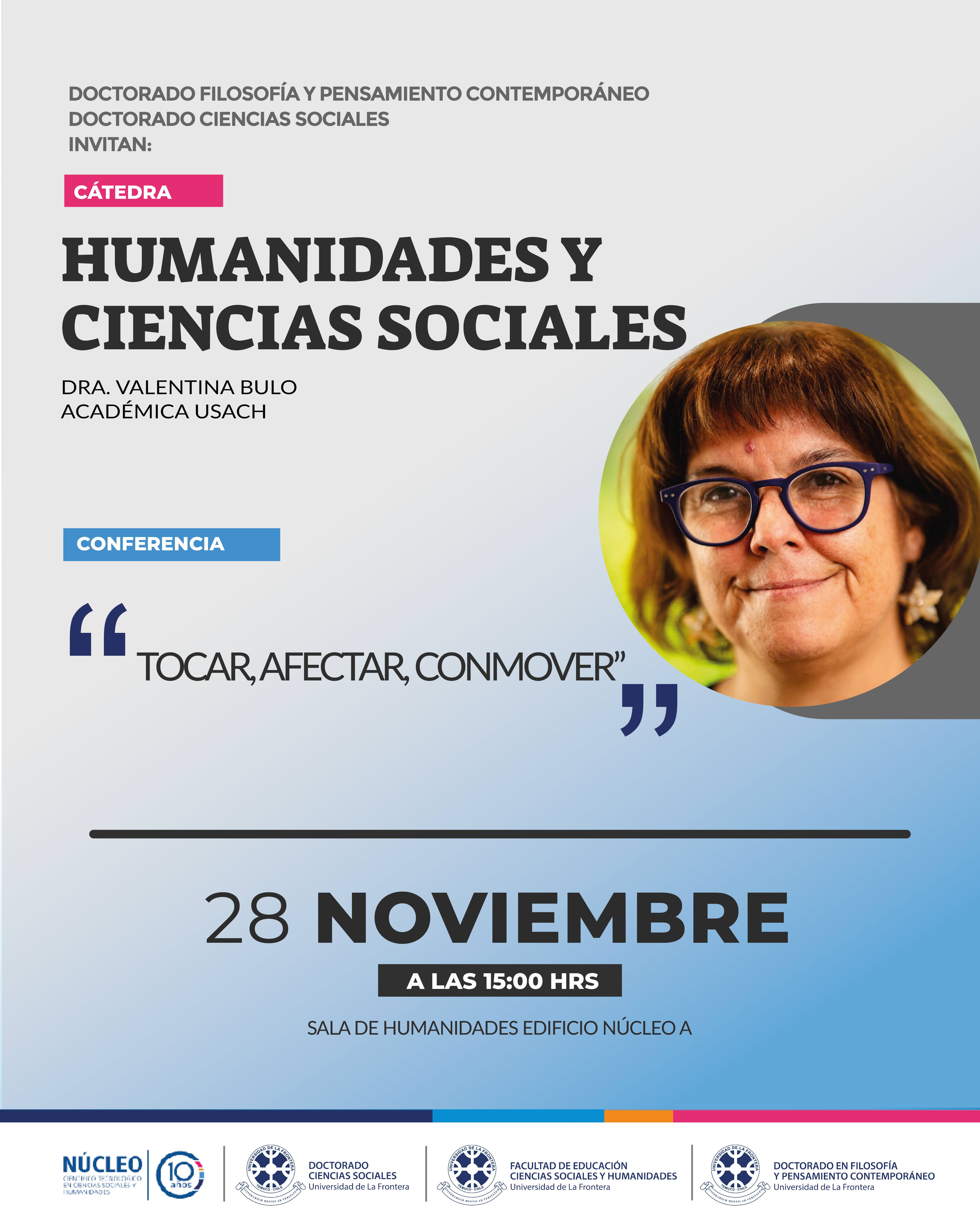 Dra. Valentina Bulo dictará la conferencia: “Tocar, afectar, conmover”, en el marco de la Cátedra en Humanidades y Ciencias Sociales